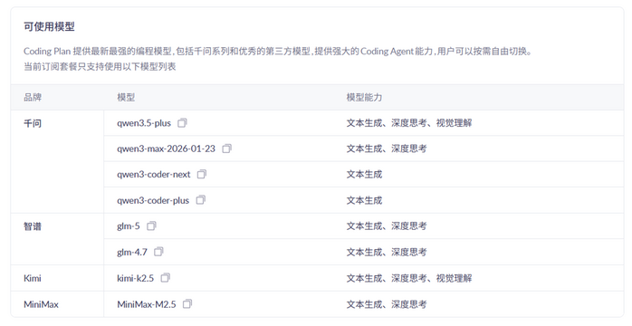 可使用模型概览