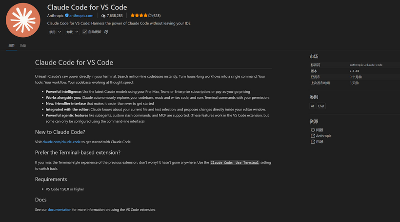 在vs code软件中搜索Claude Code for VS Code,点击安装,如果跳出要安装python环境,选是即可。